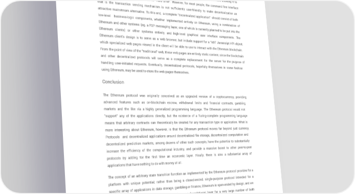 Putting It All Together: Decentralized Applications The contract mechanism described above allows anyone to build what is essentially a command line application run on a virtual machine that is executed by consensus across the entire network, allowing it to modify a globally accessible state as its “hard drive”. However, for most people, the command line interface that is the transaction sending mechanism is not sufficiently user-friendly to make decentralization an attractive mainstream alternative. To this end, a complete “decentralized application” should consist of both low-level business-logic components, whether implemented entirely on Ethereum, using a combination of Ethereum and other systems (eg. a P2P messaging layer, one of which is currently planned to be put into the Ethereum clients) or other systems entirely, and high-level graphical user interface components. The Ethereum client’s design is to serve as a web browser, but include support for a “eth” Javascript API object, which specialized web pages viewed in the client will be able to use to interact with the Ethereum blockchain. From the point of view of the “traditional” web, these web pages are entirely static content, since the blockchain and other decentralized protocols will serve as a complete replacement for the server for the purpose of handling user-initiated requests. Eventually, decentralized protocols, hopefully themselves in some fashion using Ethereum, may be used to store the web pages themselves. Conclusion The Ethereum protocol was originally conceived as an upgraded version of a cryptocurrency, providing advanced features such as on-blockchain escrow, withdrawal limits and financial contracts, gambling markets and the like via a highly generalized programming language. The Ethereum protocol would not "support" any of the applications directly, but the existence of a Turing-complete programming language means that arbitrary contracts can theoretically be created for any transaction type or application. What is more interesting about Ethereum, however, is that the Ethereum protocol moves far beyond just currency. Protocols and decentralized applications around decentralized file storage, decentralized computation and decentralized prediction markets, among dozens of other such concepts, have the potential to substantially increase the efficiency of the computational industry, and provide a massive boost to other peer-to-peer protocols by adding for the first time an economic layer. Finally, there is also a substantial array of applications that have nothing to do with money at all. The concept of an arbitrary state transition function as implemented by the Ethereum protocol provides for a platform with unique potential; rather than being a closed-ended, single-purpose protocol intended for a specific array of applications in data storage, gambling or finance, Ethereum is open-ended by design, and we believe that it is extremely well-suited to serving as a foundational layer for a very large number of both financial and non-financial protocols in the years to come. Page 34 ethereum.org