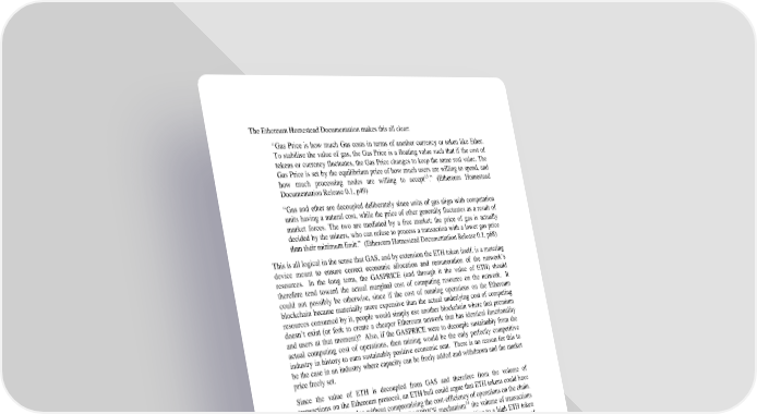 The Ethereum Homestead Documentation makes this all clear: “Gas Price is how much Gas costs in terms of another currency or token like Ether. To stabilise the value of gas, the Gas Price is a floating value such that if the cost of tokens or currency fluctuates, the Gas Price changes to keep the same real value. The Gas Price is set by the equilibrium price of how much users are willing to spend, and how much processing nodes are willing to accept13.” (Ethereum Homestead Documentation Release 0.1, p49) “Gas and ether are decoupled deliberately since units of gas align with computation units having a natural cost, while the price of ether generally fluctuates as a result of market forces. The two are mediated by a free market: the price of gas is actually decided by the miners, who can refuse to process a transaction with a lower gas price than their minimum limit.” (Ethereum Homestead Documentation Release 0.1, p68) This is all logical in the sense that GAS, and by extension the ETH token itself, is a metering device meant to ensure correct economic allocation and remuneration of the network’s resources. In the long term, the GASPRICE (and through it the value of ETH) should therefore tend toward the actual marginal cost of computing resource on the network. It could not possibly be otherwise, since if the cost of running operations on the Ethereum blockchain became materially more expensive than the actual underlying cost of computing resources consumed by it, people would simply use another blockchain where that premium doesn’t exist (or fork to create a cheaper Ethereum network that has identical functionality and users at that moment)? Also, if the GASPRICE were to decouple sustainably from the actual computing cost of operations, then mining would be the only perfectly competitive industry in history to earn sustainably positive economic rent. There is no reason for this to be the case in an industry where capacity can be freely added and withdrawn and the market price freely set. Since the value of ETH is decoupled from GAS and therefore from the volume of transactions on the Ethereum protocol, an ETH bull could argue that ETH tokens could have an arbitrarily high value without compromising the cost-efficiency of operations on the chain. But let’s first agree that because of the GASPRICE mechanism14 the volume of transactions on the ETH blockchain and the scale of its adoption are not transitive to a high ETH token value. This point is important as observers often erroneously assume that a high volume of network transaction volume driven by all of the different potential uses of the Ethereum protocol will necessarily give the ETH token high value. Let’s work through some numbers to see what in fact the utility value of ETH might be. Ethereum GDP (i.e., PQ) is the total ‘revenue’ of the computing network performing the 13 Today in practice it seems that the vast majority of transactions use the default 0.02 microETH price, but that most likely reflects the incipient nature of activity on the network. GASPRICE can be expected to become more market-driven as use of the Ethereum network grows. From a basic microeconomic perspective, if the GASPRICE (in fiat terms converted via the GASPRICE to ETH exchange rate and the fiat value of ETH) exceeds from time to time the actual fiat cost of providing the requisite computing resources, you would expect users to reduce GASPRICE offered or miners to add competing computing resources to the network until the marginal cost again equals the marginal revenue, driving a decline in the GASPRICE. This relationship should hold no matter what the scale of the operations being performed on the blockchain. The market will just keep allocating more computing and storage resources to the network as long as it is profitable to do so. 14 Note that the GASPRICE mechanism helps to reduce the incentives to fork the chain because economic rent can be eliminated quickly through it without necessitating a fork. Protocols without a GAS mechanism can be expected to end up at a similar economic equilibrium through forks as Ethereum will reach through the GAS mechanism. Ethereum may still fork for other reasons. 9