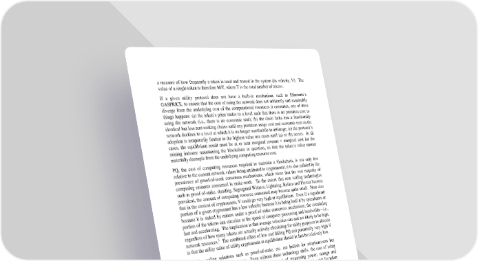 a measure of how frequently a token is used and reused in the system (its velocity, V). The value of a single token is therefore M/T, where T is the total number of tokens. If a given utility protocol does not have a built-in mechanism, such as Ethereum’s GASPRICE, to ensure that the cost of using the network does not arbitrarily and sustainably diverge from the underlying cost of the computational resources it consumes, one of three things happens: (a) the token’s price trades to a level such that there is no premium cost to using the network (i.e., there is no economic rent); (b) the chain forks into a functionally identical but less rent-seeking chains until any premium usage cost and economic rent on the network declines to a level at which it is no longer worthwhile to arbitrage; (c) the protocol’s adoption is temporarily limited to the highest-value use cases until (a) or (b) occurs. In all cases, the equilibrium result must be at or near marginal revenue = marginal cost for the mining industry maintaining the blockchain in question, so that the token’s value cannot materially decouple from the underlying computing resource cost. PQ, the cost of computing resources required to maintain a blockchain, is not only low relative to the current network values being attributed to cryptoassets; it is also inflated by the prevalence of proof-of-work consensus mechanisms, which mean that the vast majority of computing resource consumed is make-work. To the extent that new scaling technologies such as proof-of-stake, sharding, Segregated Witness, Lightning, Raiden and Plasma become prevalent, the amount of computing resource consumed may become quite small. Note also that in the context of cryptoassets, V could go very high at equilibrium. Even if a significant portion of a given cryptoasset has a low velocity because it is being hodl’d by speculators or because it is staked by miners under a proof-of-stake consensus mechanism, the circulating portion of the tokens can circulate at the speed of computer processing and bandwidth—i.e., fast and accelerating. The implication is that average velocities can and are likely to be high, regardless of how many tokens are actually actively circulating for utility purposes to allocate network resources.3 The combined effect of low and falling PQ and potentially very high V is that the utility value of utility cryptoassets at equilibrium should in fact be relatively low. Clearly, scaling solutions such as proof-of-stake, etc. are bullish for adoption/users but bearish for token value/investors. Even without those technology shifts, the cost of using decentralised protocols is deflationary, since the cost of processing power, storage and bandwidth are deflationary. This is also bullish for adoption and users and bearish for token value and investors.4 Whatever scaling solutions are developed, the inherent redundancy of the consensus mechanism means that there may be fewer use cases than many decentralised revolutionaries think in which a decentralised solution displaces a centralised solution. Use cases will be limited to dematerialised networks where the value of decentralisation, censorship-resistance and trustlessness is high enough to justify the inherent inefficiency and redundancy of the consensus mechanism. Is it worth the cost for payments? Yes for some, but not for all. Consider Twitter -- what is the added value to the user of a massively redundant, trustless, 3 Chris Burniske’s recent blog post “Cryptoasset Valuations” (https://medium.com/@cburniske/cryptoasset- valuations-ac83479ffca7) estimates an average V of 7, after adjusting for hodlers, stakers, etc. This assumption may be optimistic (meaning, it is probably a low value of V to assume at equilibrium and therefore an optimistic number to be using to estimate the potential equilibrium value of a given cryptoasset), but his framework is useful for thinking about the different drivers of V for a given cryptoasset. 4 I have yet to come across any examples of a protocol where I have been persuaded that when all is said and done the underlying scarce resource being provisioned is something other than computing resources, or at least where that is what it will boil down to at competitive equilibrium after competition in mining, forks, etc. Please alert me to any counter examples you have seen or can think of. 3