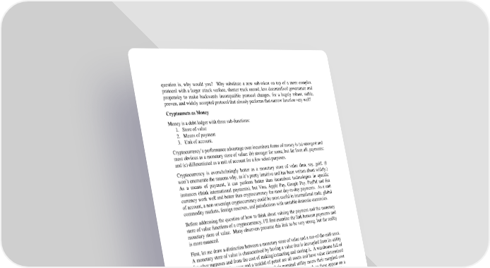 question is, why would you? Why substitute a new sub-token on top of a more complex protocol with a larger attack surface, shorter track record, less decentralised governance and propensity to make backwards incompatible protocol changes, for a hugely robust, stable, proven, and widely accepted protocol that already performs that narrow function very well? Cryptoassets as Money Money is a debt ledger with three sub-functions: 1. Store of value 2. Means of payment 3. Unit of account. Cryptocurrency’s performance advantage over incumbent forms of money is (a) strongest and most obvious as a monetary store of value; (b) stronger for some, but far from all, payments; and (c) differentiated as a unit of account for a few select purposes. Cryptocurrency is overwhelmingly better as a monetary store of value than, say, gold. (I won’t enumerate the reasons why, as it’s pretty intuitive and has been written about widely.) As a means of payment, it can perform better than incumbent technologies in specific instances (think international payments), but Visa, Apple Pay, Google Pay, PayPal and fiat currency work well and better than cryptocurrency for most day-to-day payments. As a unit of account, a non-sovereign cryptocurrency could be most useful in international trade, global commodity markets, foreign reserves, and jurisdictions with unstable domestic currencies. Before addressing the question of how to think about valuing the payment and the monetary store of value functions of a cryptocurrency, I’ll first examine the link between payments and monetary store of value. Many observers presume this link to be very strong, but the reality is more nuanced. First, let me draw a distinction between a monetary store of value and a run-of-the-mill asset. A monetary store of value is characterised by having a value that is decoupled from its utility for other purposes and from the cost of making/extracting and storing it. A warehouse full of goods, a stockpile of copper and a tankful of petrol are all assets and have value (determined by the market at the equilibrium point where their marginal utility meets their marginal cost of manufacture/extraction, i.e., MR = MC). Inventories of assets such as these appear on a company’s balance sheet, but companies seek to minimise how much they have to hold to carry out their business, given the capital carrying cost. They don’t try to accumulate these inventories to store their retained earnings. Gold, by contrast, is a monetary store of value. Its value is decoupled at equilibrium from the cost of extracting and storing it. While we may also use it for jewellery (an ancient way of signalling our wealth to other members of society), and we use a bit of it for manufacturing electronic goods and other industrial uses, we also store tonnes of it at great expense in giant inert lumps as a form of savings—a store of value—with no intent of ever using those lumps for any other purpose. Gold is therefore arbitrarily expensive relative to its extraction and storage cost. Its value is subjective. Consider some examples of the things we use as means of payment versus those we use as 21 monetary stores of value today : 21 Note that I exclude here things like pre-paid debit cards, gift cards, pre-paid telephone plans and air miles as they are relatively immaterial to the financial system. As it happens, these can all be used for payments and are assets but people treat them as working capital (immobilised balance sheet assets with a carrying cost) rather than a form of savings, so if anything, they are more payment rails than monetary stores of value. 12