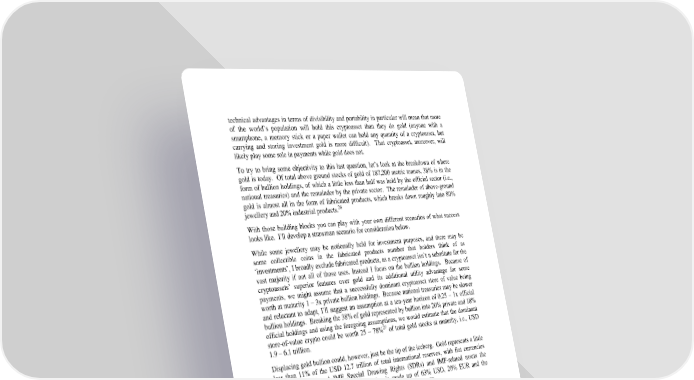 technical advantages in terms of divisibility and portability in particular will mean that more of the world’s population will hold this cryptoasset than they do gold (anyone with a smartphone, a memory stick or a paper wallet can hold any quantity of a cryptoasset, but carrying and storing investment gold is more difficult). That cryptoasset, moreover, will likely play some role in payments while gold does not. To try to bring some objectivity to this last question, let’s look at the breakdown of where gold is today. Of total above ground stocks of gold of 187,200 metric tonnes, 38% is in the form of bullion holdings, of which a little less than half was held by the official sector (i.e., national treasuries) and the remainder by the private sector. The remainder of above-ground gold is almost all in the form of fabricated products, which breaks down roughly into 80% jewellery and 20% industrial products.26 With those building blocks you can play with your own different scenarios of what success looks like. I’ll develop a strawman scenario for consideration below. While some jewellery may be notionally held for investment purposes, and there may be some collectible coins in the fabricated products number that holders think of as ‘investments’, I broadly exclude fabricated products, as a cryptoasset isn’t a substitute for the vast majority if not all of those uses. Instead I focus on the bullion holdings. Because of cryptoassets’ superior features over gold and its additional utility advantage for some payments, we might assume that a successfully dominant cryptoasset store of value being worth at maturity 1 – 3x private bullion holdings. Because national treasuries may be slower and reluctant to adapt, I’ll suggest an assumption at a ten-year horizon of 0.25 – 1x official bullion holdings. Breaking the 38% of gold represented by bullion into 20% private and 18% official holdings and using the foregoing assumptions, we would estimate that the dominant 27 store-of-value crypto could be worth 25 – 78% of total gold stocks at maturity, i.e., USD 1.9 – 6.1 trillion. Displacing gold bullion could, however, just be the tip of the iceberg. Gold represents a little less than 11% of the USD 12.7 trillion of total international reserves, with fiat currencies making up 86% and IMF Special Drawing Rights (SDRs) and IMF-related assets the remaining 3%.28 The fiat currency portion is made up of 63% USD, 20% EUR and the remainder other currencies (most significantly GBP, JPY and CHF). We need to separate fiat currencies’ use for domestic payments from their use as international reserves. As stated above, there are good reasons to be sceptical about how significant a portion of domestic payments a non-sovereign cryptoasset will replace outside of countries with unstable sovereign currencies, namely: the existence of incumbent low cost and efficient centralised payment rails, the unwillingness of states to give up control over domestic monetary policy and the inevitability of sovereign digital currencies. But think how uncomfortable a situation it is for countries to hold the bulk of their international reserves in other countries’ fiat currencies. We know that China and Russia in particular chafe at this situation. They would love to have an alternative to the USD and EUR and have even talked about creating an alternative (which didn’t go very far, since creating such an alternative would require their trusting each other). Think about how difficult it must be for the Chinese to have exports often priced in USD and for commodity-producing nations that commodities are priced globally in USD. Furthermore, any USD-based transactions must pass through 26 GFMS Gold Survey 2017 p.36 27 Low end: ((20% * 1) + (18% * 0.25)) = 25%; High end: ((20% * 3) + (18% * 1.0)) = 78%. 28 As of 28 April 2017. International Monetary Fund 2017 Annual Report. Note that on 28 April 2017 an IMF Special Drawing Right = 1.371020 USD. 18