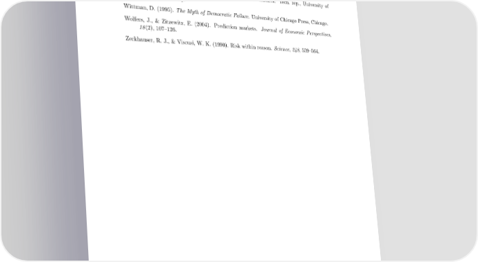 Tullock, G. (1981). Why so much stability. Public Choice, 37(2), 189–202. Varian, H. R. (1998). Effect of the internet on financial markets. Tech. rep., University of California, Berkeley. Wittman, D. (1995). The Myth of Democratic Failure. University of Chicago Press, Chicago. Wolfers, J., & Zitzewitz, E. (2004). Prediction markets. Journal of Economic Perspectives, 18(2), 107–126. Zeckhauser, R. J., & Viscusi, W. K. (1990). Risk within reason. Science, 248, 559–564. 32